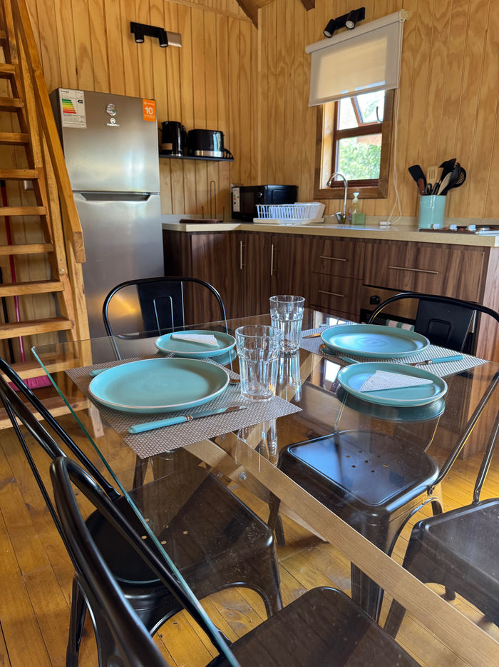 Cada cabaña tiene capacidad para 6 personas y está equipada con todo lo necesario para una estancia placentera.